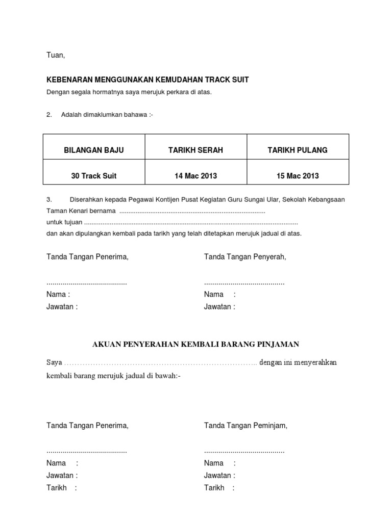 Surat Akuan Penerimaan Barang Track Suit Pkg Sungai Ular Pdf